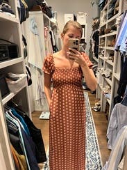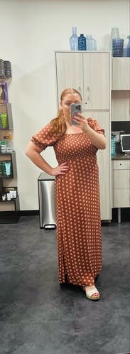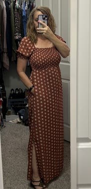 This was a real miss for me. The way the pattern stretched out across the bust was unflattering. The empire waist gave me that "is she pregnant?" look. And it was super long.