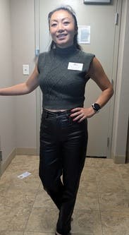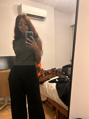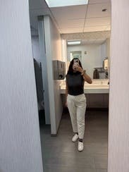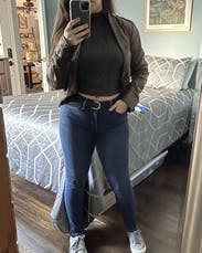 Note that it’s cropped, so best to pair with a high waisted pant. But really great fit and comfortable fabric. Would 100% recommend