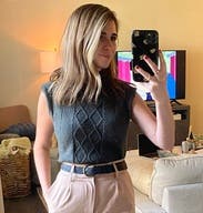 A cute, unique sweater vest...perfect for the fall/winter! I wore this was a top underneath & it was very chic & classy. It does run a little small & short, so size up 1-2x if you want a relaxed, loose fit.
