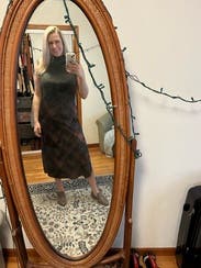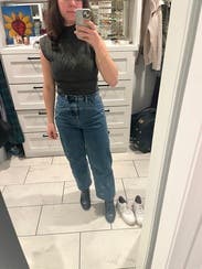 I folded the turtleneck down to wear with a button down, didn’t look right with just a long sleeve top under it. Felt cute and warm all day, the green color was nice.