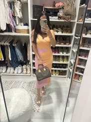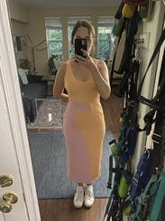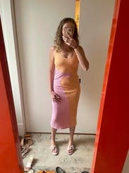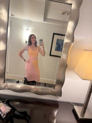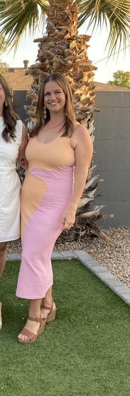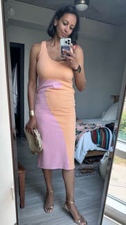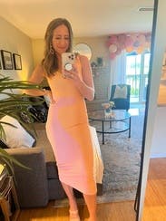 Wore twice for dinner out on vacation and this dress paired perfectly with nude block heels or white sneakers + a jean jacket. It hugged in all the right places. That said due to my height - 5’ 1” - the dress hit right above my ankles and the dress hugged here which restricted my stride length and ability to walk fast. It wasn’t really an issue, the dress looked awesome, it was just preferable to Uber to dinner instead of walking and I wouldn’t wear it for a day of sightseeing for this reason. I’m sure it would be a no issue walking wise for someone taller than 5’ 4”.