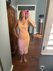 And boy am I glad I went for it! I usually wait to see what others think but risked it & it turned out to be the perfect dress. Form fitting but flattering & the length is midi if you’re taller like me. Can’t express enough how comfy this is, too. Love.