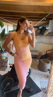 Body con - esque. A tad see thru. Very fun sunset colors.