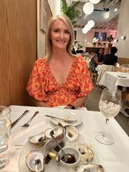 Wore this to dinner while on vacation and it was just lovely. The neckline was tasteful yet sexy and the colors really popped.