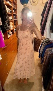 Cute everyday summer dress. The material is really nice and light. Layered with a Jean jacket. The top of the dress on me was pretty large.