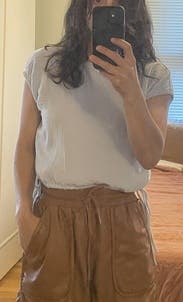 Love the tie sides, just a little iffy for work? But I did it anway...otherwise, SO cute. The fabric is slightly textured and comfortable, lays well, the crop is perfect - got so many outfits out of it.
