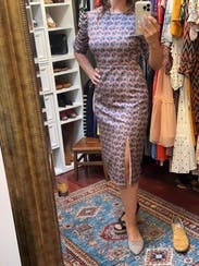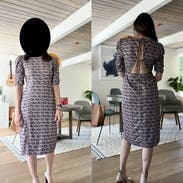 Fun, very classy feeling dress that has a stunning opening in the back - LOVE the sleeves! Makes you look shapely.
