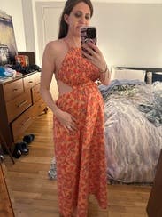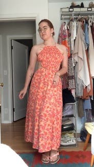 Really cute dress. The cutout is super unique and it's very adjustable. The Large waist/bottom is really stretchy and was too big for me, so it was sagging weirdly. I would rent again but get a Medium.