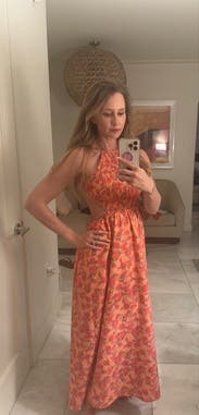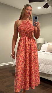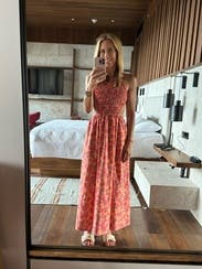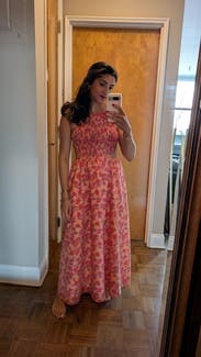 This dress is incredible!! Rented it for Tulum and wore to dinner. Received lots of compliments on the color and fit. The smocked top is super flattering and I'm obsessed with the open back. Have been wearing non stop since I got home and am considering purchasing. it's THAT GOOD.