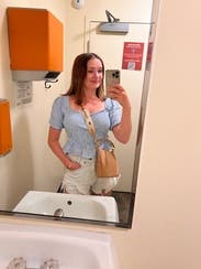 I wore this for a distillery tour in Kentucky with friends. I paired it with high-waisted white jeans. The arm holes were tight, and I have small arms so if you are bigger on top, I would caution you there.