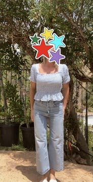 Came with the tags on. I love the back crisscross detail. Was slightly cropped but I wore with high waisted jeans to work. I only wore nipple pasties because my bra straps showed. Overall, I felt cute and summery in this!