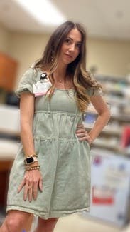 This dress was so cute and so many people complemented as I wore to a work luncheon. The denim material is heavy so it keeps the babydoll fit from blowing around in the wind. The sleeves are a tad uncomfortable since it’s denim material and kind of rubs. But I would rent this over and over!