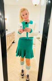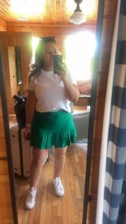 Rented this for a golf themed party and it was the perfect preppy fit. I wanted something a little more elevated than a golf skirt / shirt. The skirt kinda bunches weird under the waistband, but I’m not sure if a M would have worked better or not. Length was great - flirty but not super short (I felt comfortable wearing it to a brunch w/ MIL).