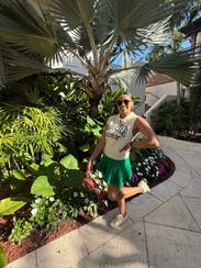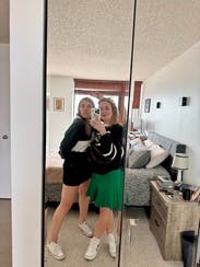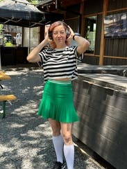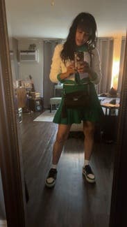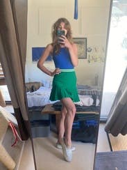 Wore this skirt to the US Open in NYC. Funny enough my friend rented the same one so we went as “doubles”. It was long enough and the color was fun which was great but it was the slightest bit tight around the bum.