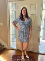 This is a simple summer wrap dress. It seems slightly broad in the shoulders and I had to pin the top closure together - there was no way it would have stayed closed on its own. I liked the accents on the sleeves, they added interest. I wore it for work (Zoom especially) and think it'd be a nice spring dress, perfect for Easter or a spring party.