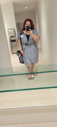 It was a very comfy flattering dress. Top gaped a little bit even on my larger chest, so I possibly could have secured a little better, but I thought the length was perfect and it was a great dinner dress