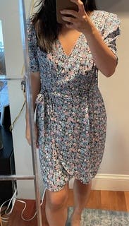 I wore this wrap dress out to a dinner and to a casual party. It fit me really well, and the shoulder sleeves have a small "poof" to them which made the dress feel a bit formal despite being a wrap dress. It fit my body really well - cinching at the waist and laid really smooth on hips. I got a lot of compliments. I would see it being a harder fit for people with bigger boobs. If you're smaller chested w/curves, you could def. rock this number. It's fun!