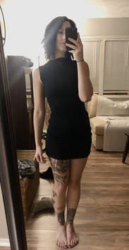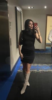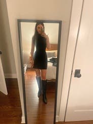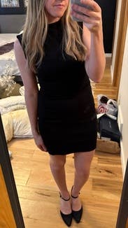 Loved this dress - it’s tight, but the cut is flattering. Wore this for a nice dinner with boots, but you could dress it up more with heels!
