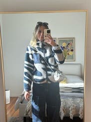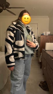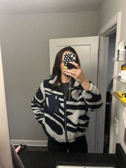 I am pleasantly surprised by this zip up! It’s such a fun pattern and very warm. I read the reviews and decided to size up to a Large for a more oversized fit. For reference, I always wear a S or M in jackets. I would definitely rent it again… maybe I’ll buy it!