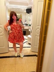I wore this for a full day of walking around Las Vegas while at a work conference. This is the second time I’ve rented this dress it’s breezy and easy to wear. I’m pretty sure in the dress is short on me so I imagine anybody over 5’4” is going to struggle with the length.