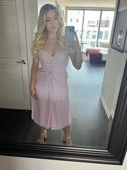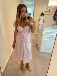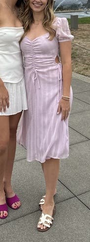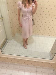 Loved this dress all around! Super cute color & love the small cut-outs on the side. Think the 3 bows are such a trendy touch. It even came to me new with tags. Would definitely rent again!