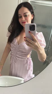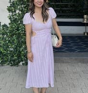 I recently rented this dress and I have to say, I was pleasantly surprised by how much I loved it! I wore it for family pictures and it was the perfect choice. The cutouts added just the right amount of edge to the dress, while still keeping it feminine and classy. The fit was true to size and the quality of the fabric was top-notch. I received so many compliments on the dress and felt confident and stylish the entire time. I highly recommend the Purple Cut Out Dress by Designer Louna for any special occasion or event!