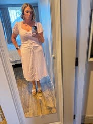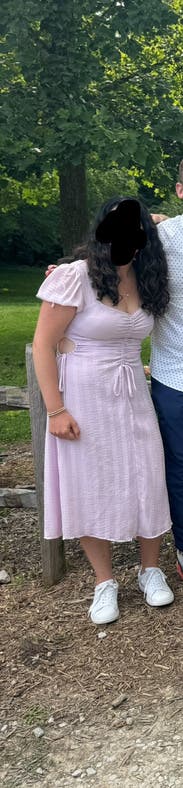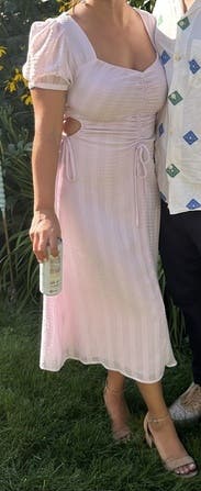 Obsessed I usually hate side cutouts because I have a short torso and it always falls weird. These cutouts are subtle and you can cinch the holes to change the size! This dress is very feminine and I felt beautiful. It’s a bit sheer so careful with your undergarments. I dressed this up and down. I was tempted to buy it!