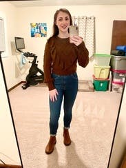 I absolutely loved this sweater. It is a little cropped and probably even more so on me because I have a larger chest. But I just adored this look for a casual dinner with family. I would definitely recommend this sweater. I would say it runs a little small so if you are in between sizes, size up.