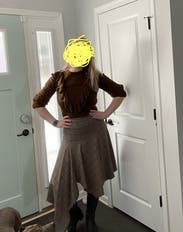 I love the feel of this sweater!! Wish it was a little longer as it is very cropped. But it work with a high waisted skirt.