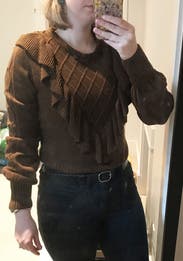 I loved this fun, frilly sweater. The fabric is lighter weight than it looks, so it's not too bulky but still warm. I wore it a bunch of times before returning.