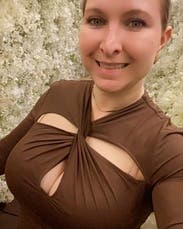 So cute, nylon, won’t hide anything fabric that sticks to your skin. The slits were sexy, but def had to use the stick on booby covers. Neutral, versatile brown. TTS maybe a bit smaller than the usual MED, but it’s supposed to be fitted