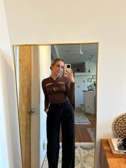 I braved renting this top despite low ratings. It was great! A little sexy for sure but not over the top. I think the key is that you can’t wear it with a bra. It’s a little on the short side so wear with high-waisted skirt, pants or jeans.