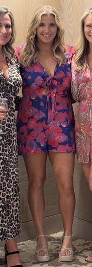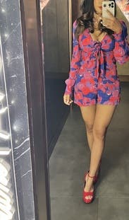 Love this romper! Deep V cut so you may want some fashion tape to keep the girls from popping out. Light and breezy perfect for a hot summer night.