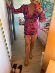 Obviously a lot of cleavage (good or bad) and a romper so peeing is inconvenient but I felt so hot and it traveled well, not super wrinkly. Cute print, good fit. Would definitely rent again!