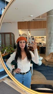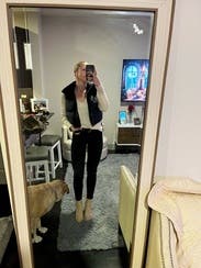I love the texture of this sweater- it makes it look more elevated. It is a little too low cut for my taste but I put a white cami under and it looked really good!