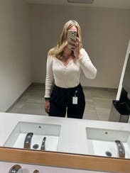 Beware of the slightly wide neck- I have a large chest so thought maybe it wouldn’t be as much of a deal but it was a little annoying. Overall I liked the top and fit though. It’s comfortable and flattering