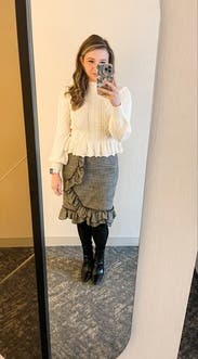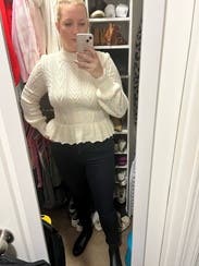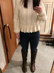 Thick sweater made this a cozy fit for a winter day. I loved how it hit slightly above the hip so it didn't accentuate my hips as much as normal Peplum shirts.