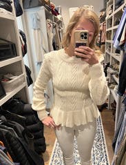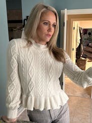 Tight skinny jeans will set off the peplum top so well. Wonderful sweater.