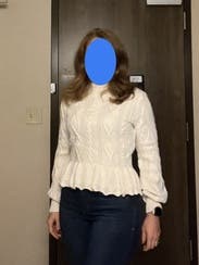 Cute sweater and very warm. I don't love things around my neck but it was cold enough that this was nice. Shorter in length so better with higher waisted pants. Long billowy sleeves and since it's white you have to be careful they don't get in anything. :) Overall a really sweet sweater!