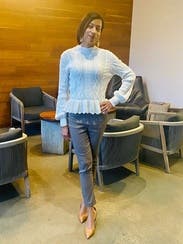 Wore this cutie to work, out for drinks, and to a family party. One of the best rentals! Super soft, adorable frill on the back that is flattering. The three little buttons on the back took getting used it. Loved this - will rent again!
