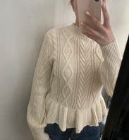Nice sweater, I really liked the peplum. It is a little hard to get on by yourself as it buttons up the neck