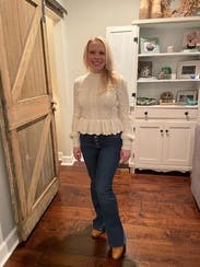 You could definitely tell this sweater had seen some life by the buttons at the neck but it was perfect with these colored denim and boots for Thanksgiving. I felt like it was the perfect peplum and still flattering.