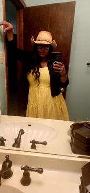 I wore this dress to The Whitney, I was in an exhibit and wanted to look my best! I love this dress! I am a huge fan of yellow and this dress did the trick! It ties in the back which can make the sleeves tricky. The dress is also more a baby doll dress so for me, the waist line was higher up on me rather than in the true waist. So for those with an hourglass shape it might be okay just depends. I feel comfortable but would love it to be a bit lower for my body type. The fabric is a nice combo of stiff and soft. Giving good structure. Well made for sure! And the lace is not delicate, which is great! So you don't have to worry about being tender with it.