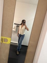 definitely loose in the arm holes so it hung a little baggy and could see my bra, but otherwise a super flattering vest if you want to try out the trend!