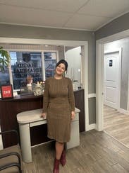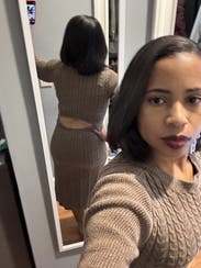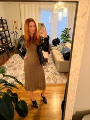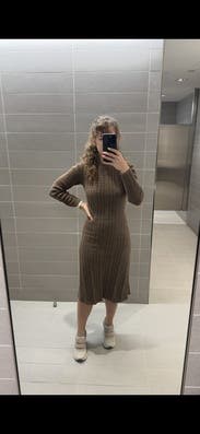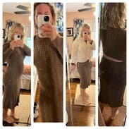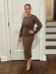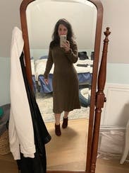 Loooooved this dress and considered buying! So cozy and cute, amazing fit. I did wear it to work even with the back cutout ….. but maybe shouldn’t have. Would rent again.