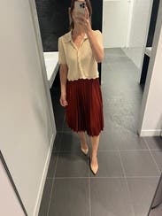Looks simple but it’s such a versatile lil cutie. Very dainty top with the scallop details and goes with everything— I wore with this skirt for work, with jeans on the weekend, linen shorts, patterned pants, etc. Considered buying it.
