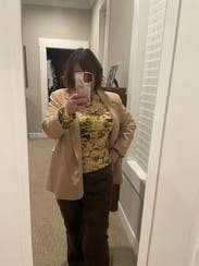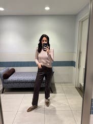 I absolutely love how comfortable these pants are. Beautiful shade of brown and easy to dress up or wear every day. I love these so much that I might have to buy them