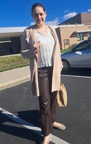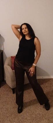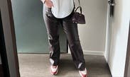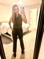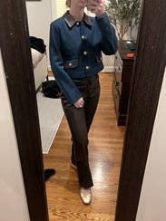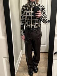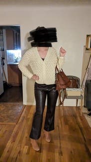 I should've worn my shapewear with the whole look... but man, it was fun to sport faux leather pants! Got 3 stranger compliments and I felt on trend and sassy. I'm 5'3 and they worked great with a boot heel.