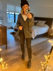 this was the perfect everyday cardigan. wore this dressed down. It was super warm