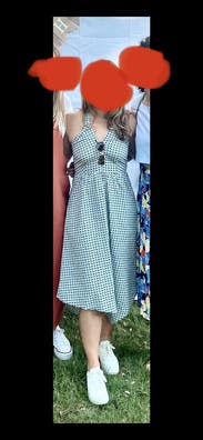 I’m so glad I read the reviews and sized down to an XS because it was still a bit big on me having a smaller chest. This was the perfect dress for my work’s summer outing yesterday - got so many compliments! Felt very 1950s house wife chic 😂